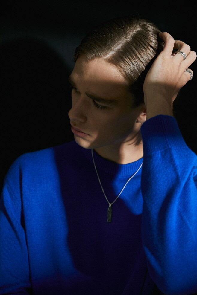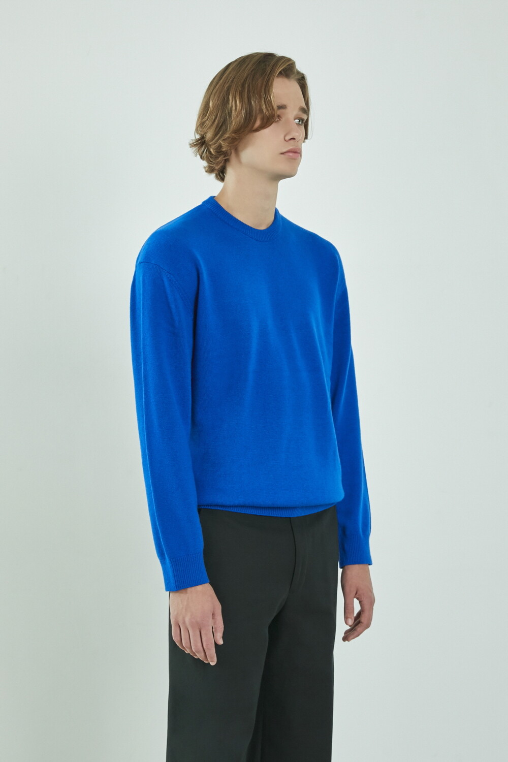 [스카브] 캐시미어 블렌드 세미오버핏 스웨터(블루)