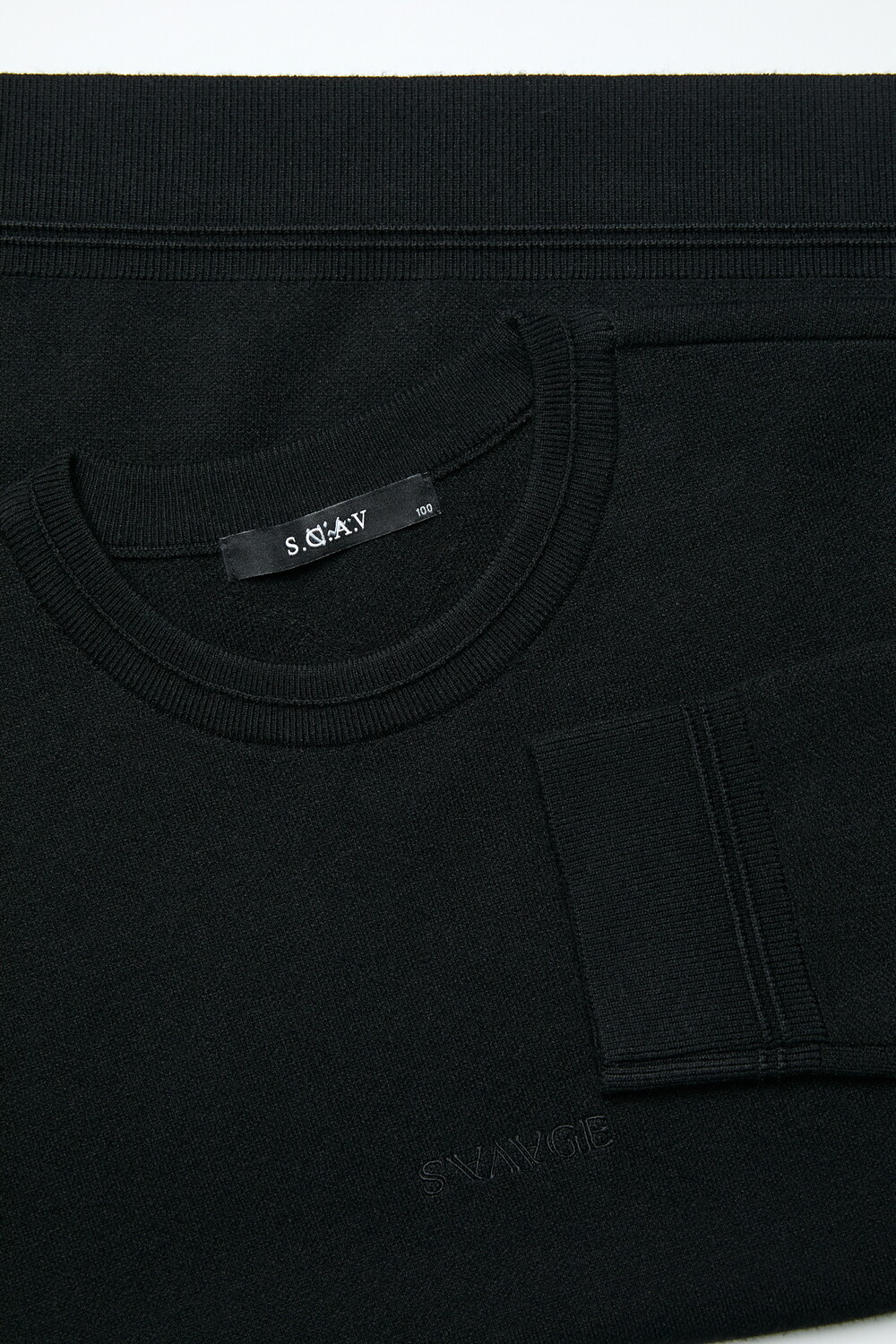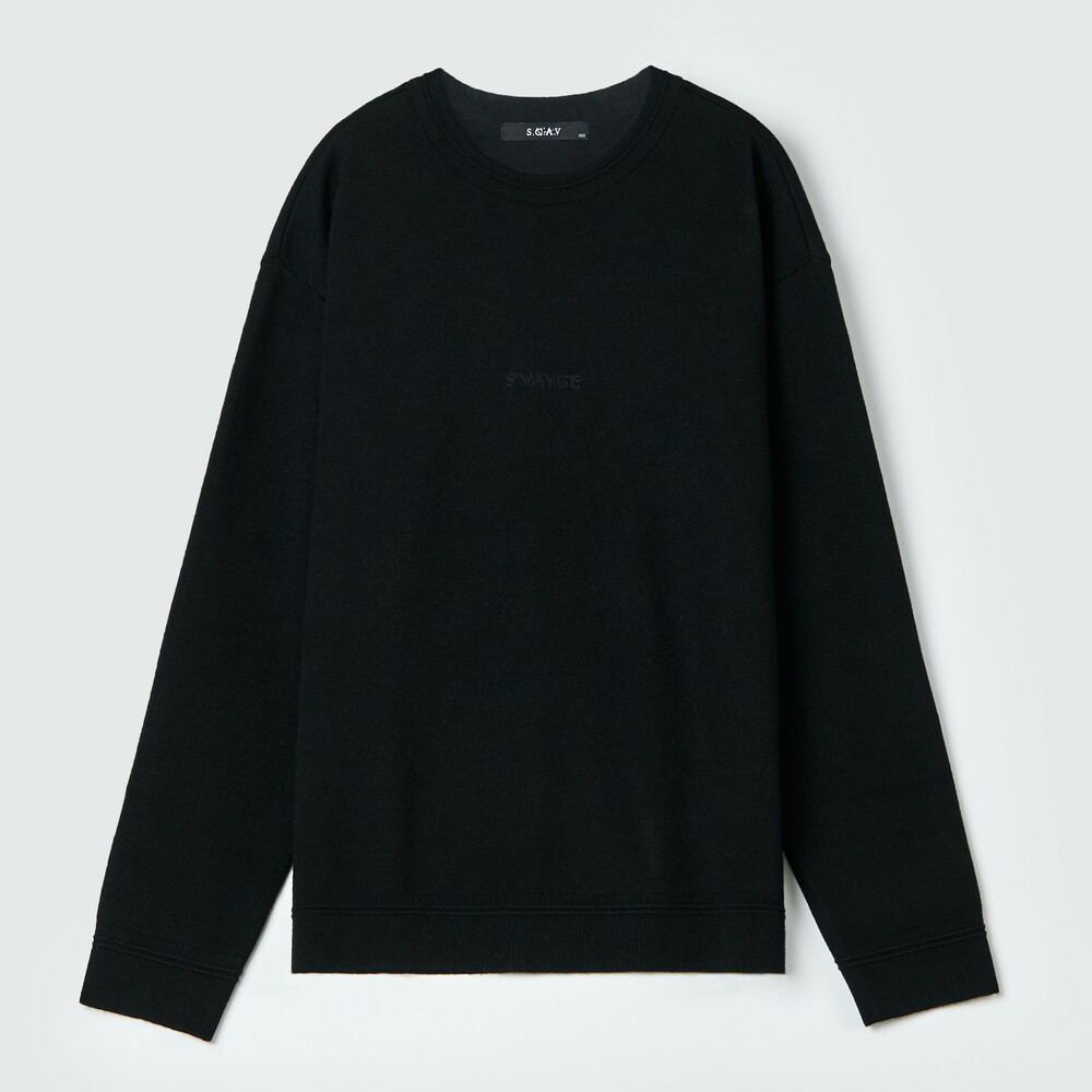 [스카브] SAVAGE 레터링 자수 포인트 세미 오버핏 스웨터(블랙)