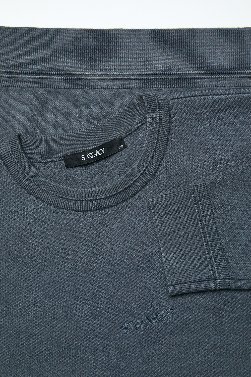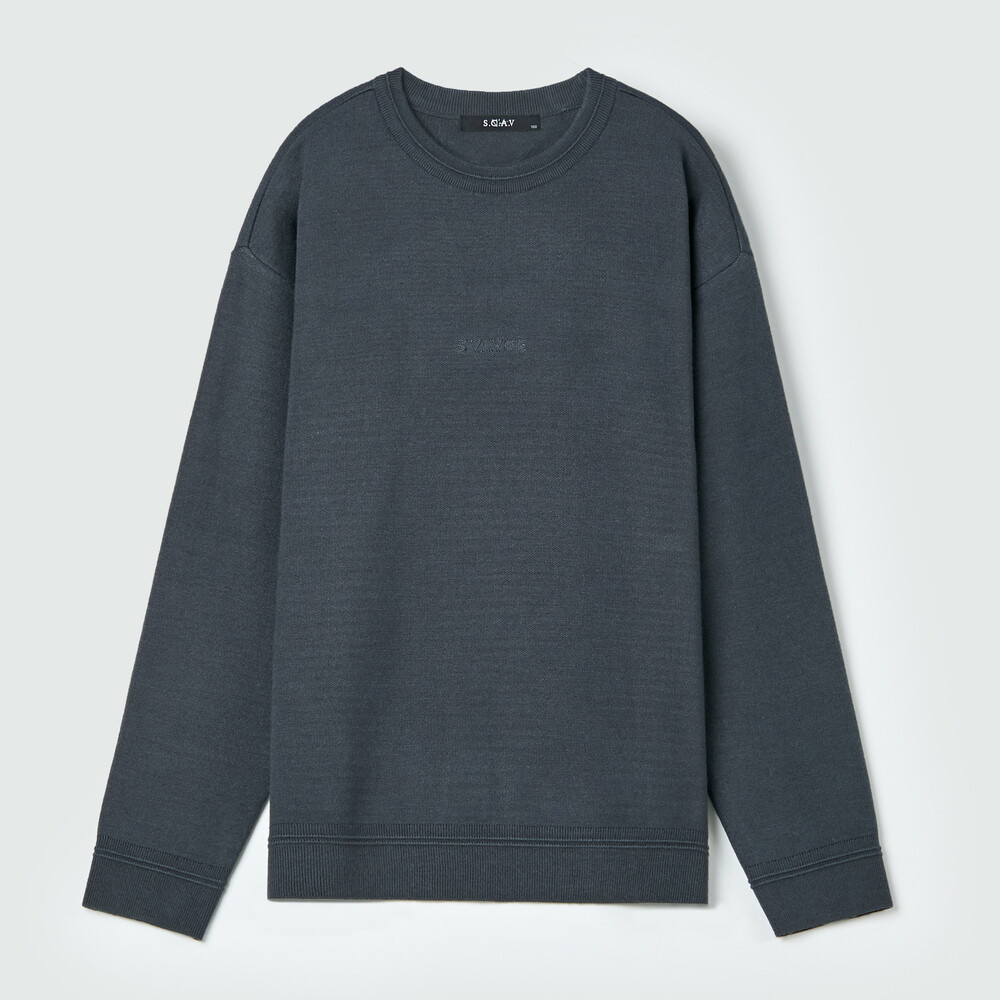 [스카브] SAVAGE 레터링 자수 포인트 세미 오버핏 스웨터(다크 그레이)