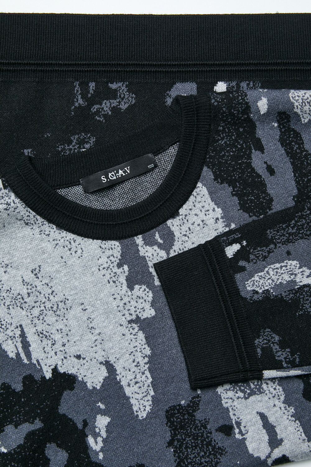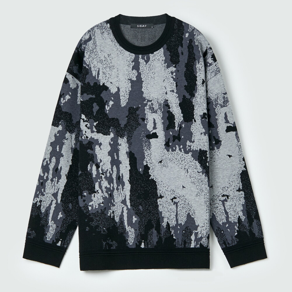 [스카브] 페인트 오버 패턴 자카드 오버핏 스웨터(블랙)