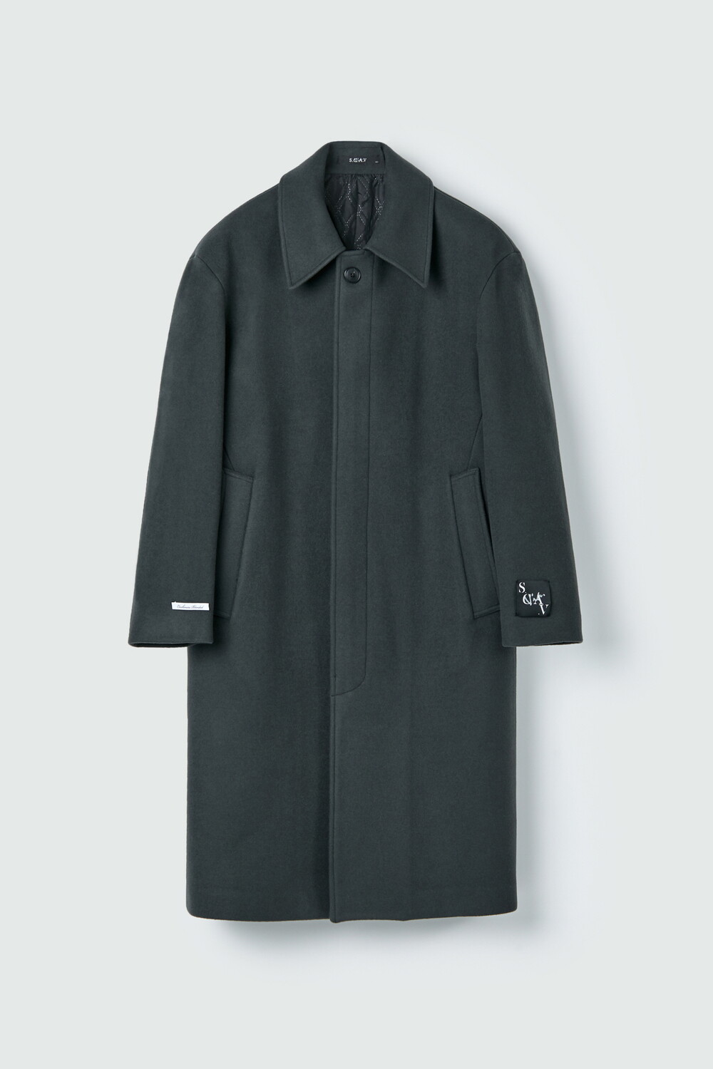 [스카브] 캐시미어 혼방 히든 버튼 오버핏 발마칸 코트 (카키 그레이)