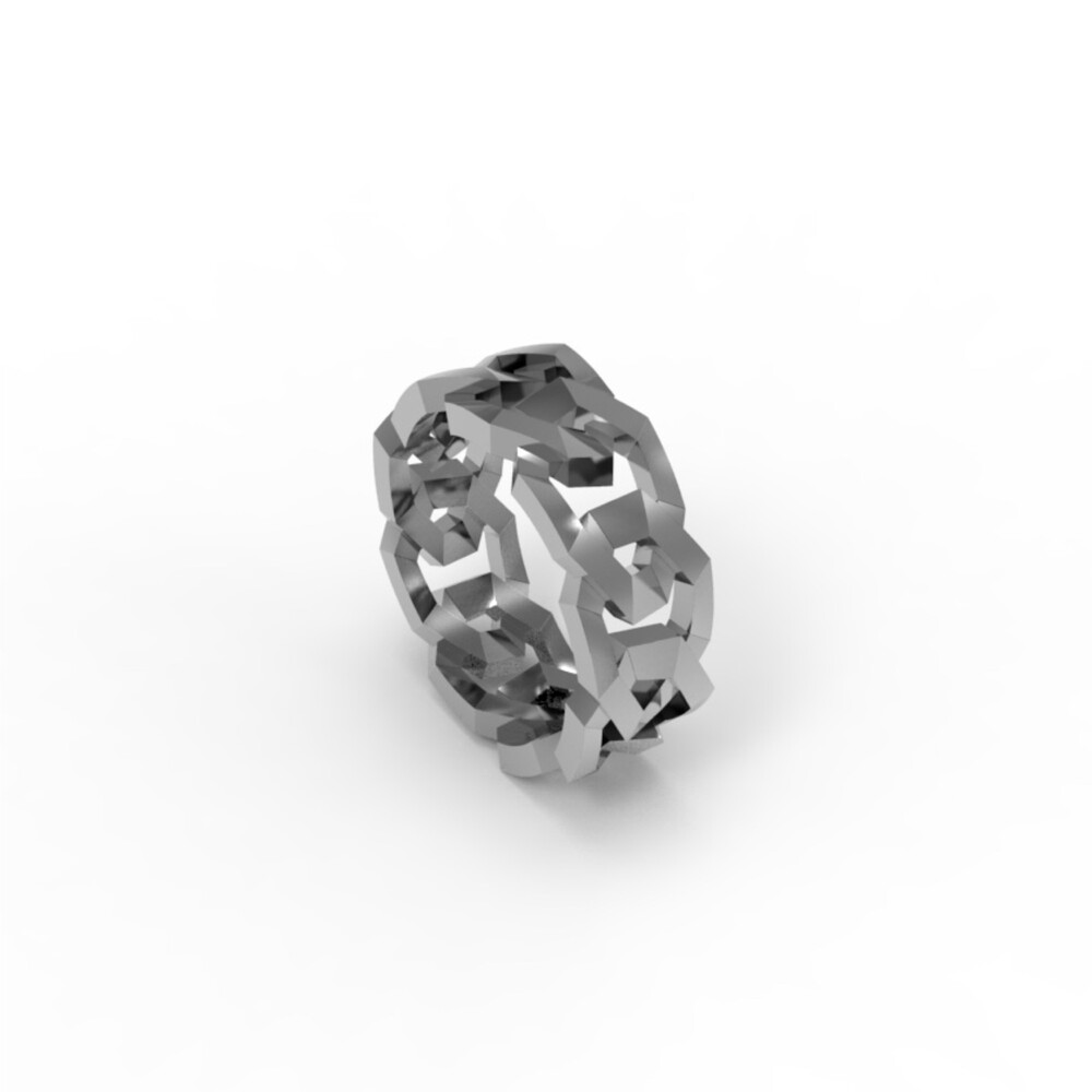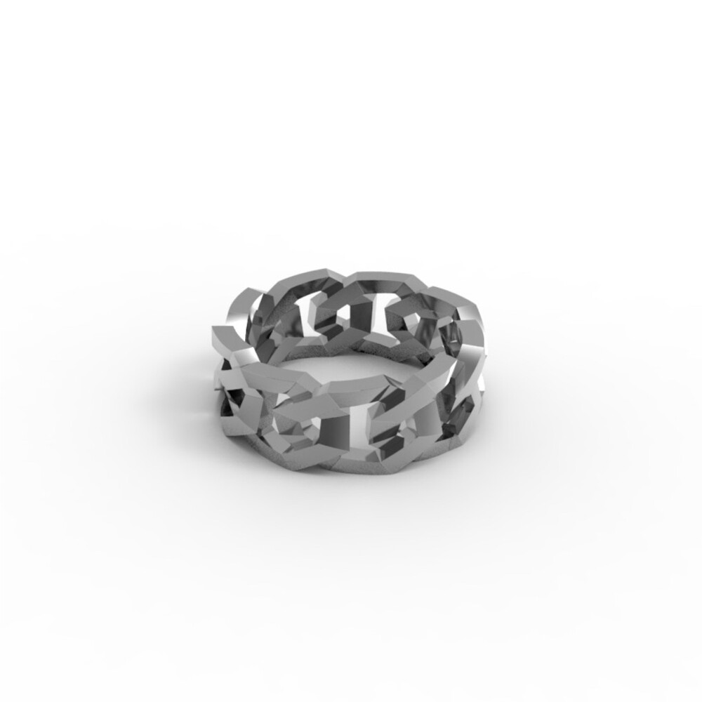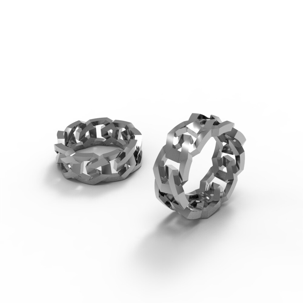 - 팔각형 모양의 체인을 활용한 디자인 상품으로 특유의 각진 형태가 포인트인 변형 체인링 입니다.